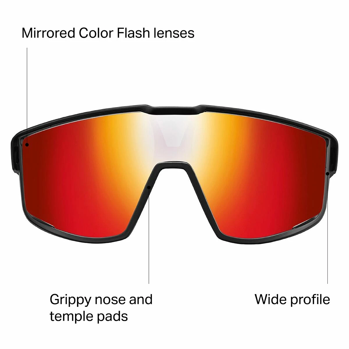 - Nose and temple pads are grippy and shock absorbing for dynamic motion